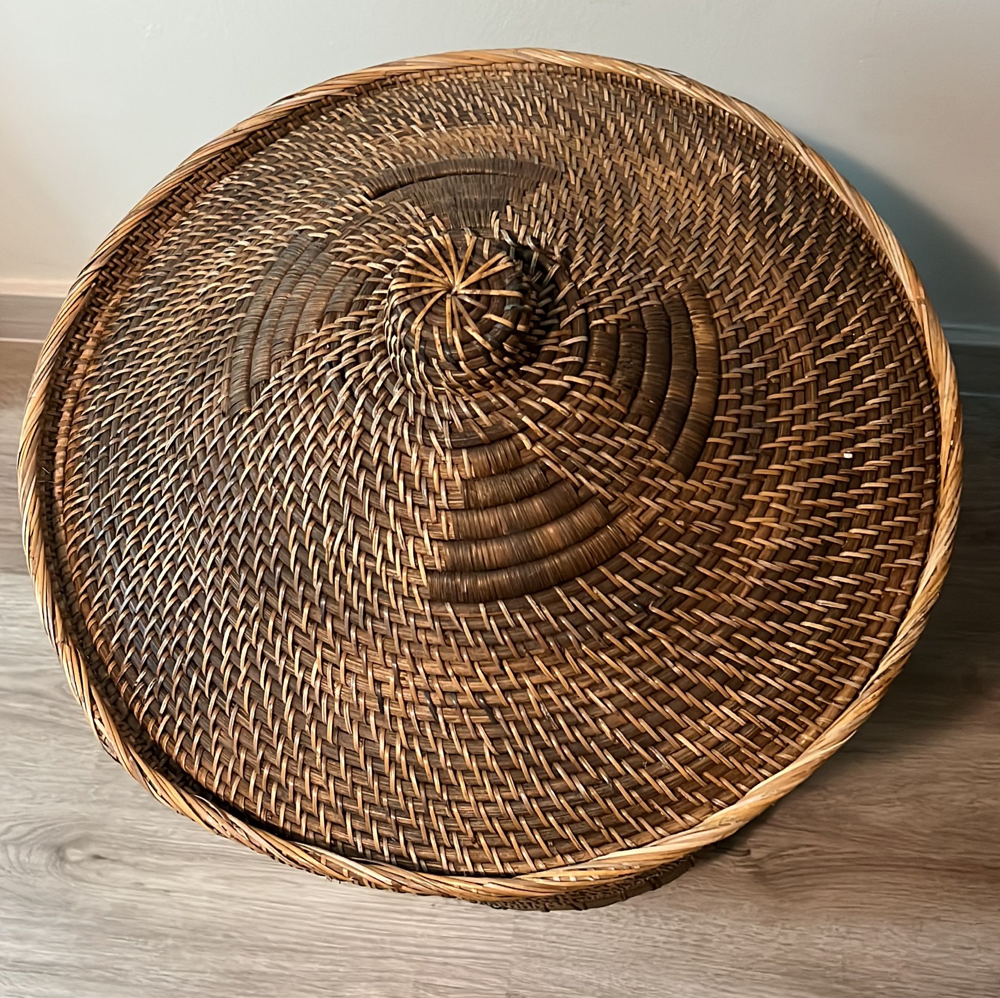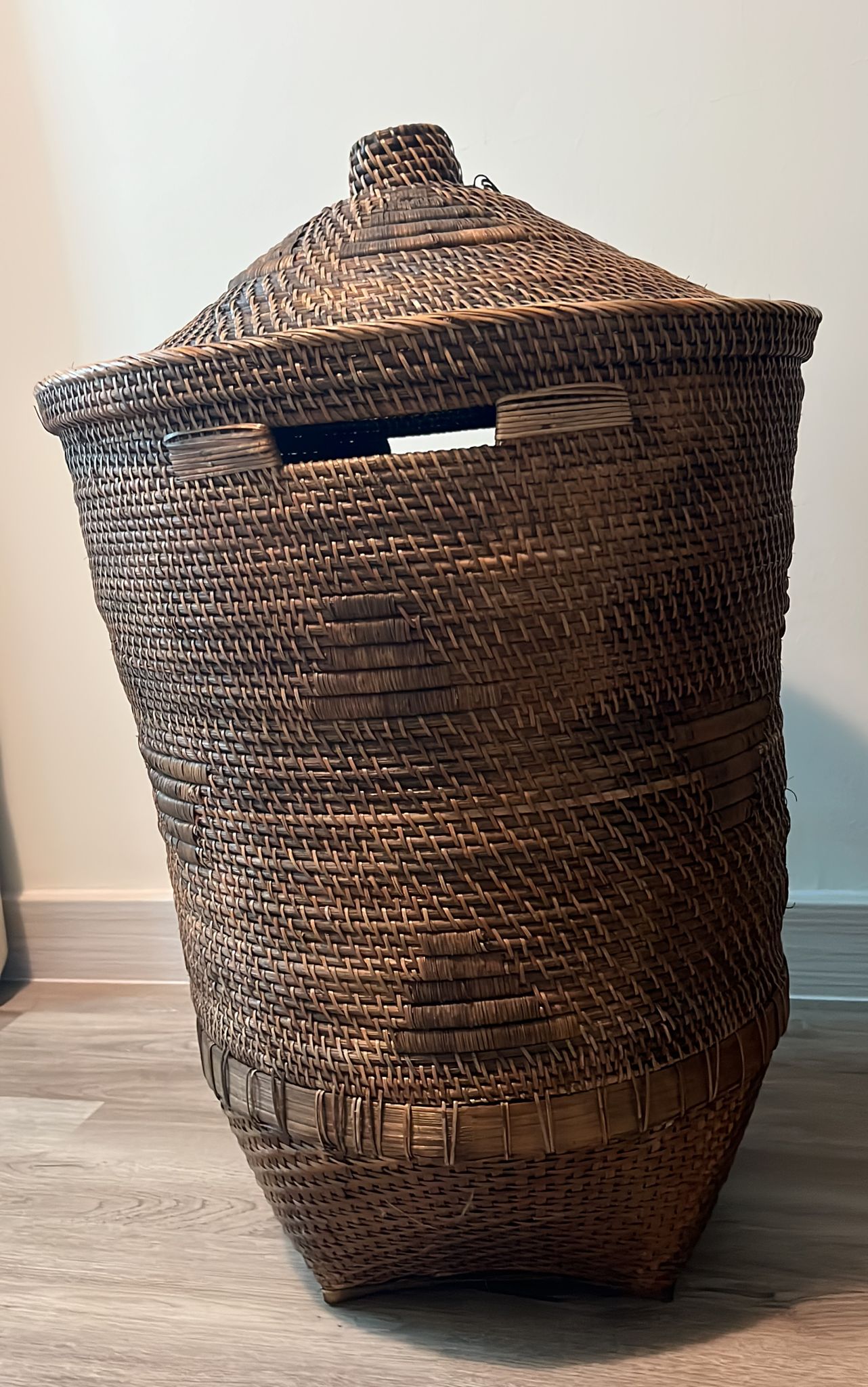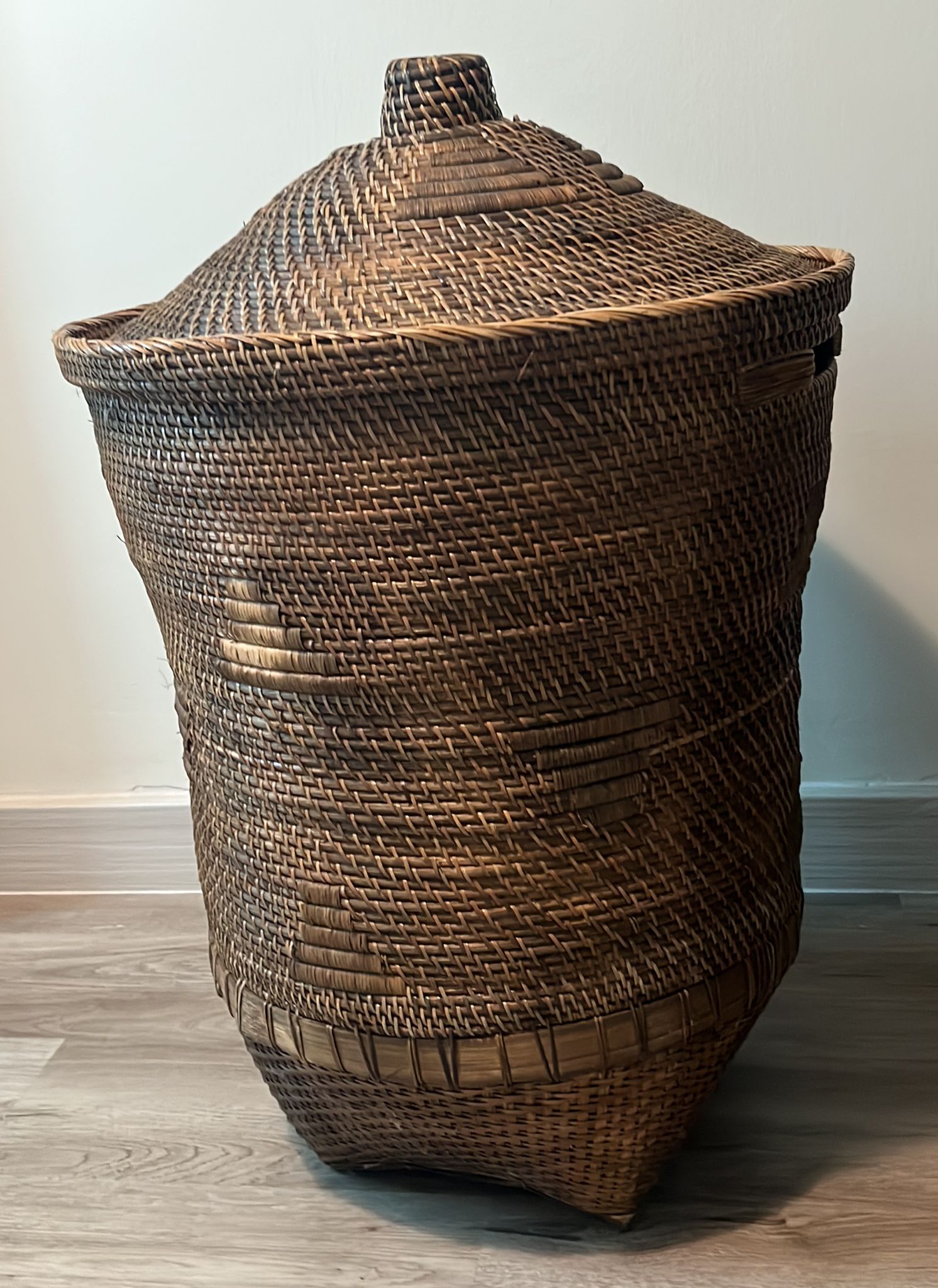 Handcrafted Rattan and bamboo weaved basket for laundry and other storage beside being a beautiful addition to an elegant living room or bedroom